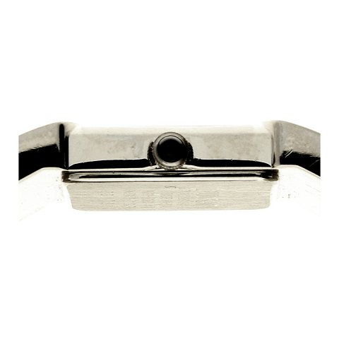 Pulsar Quartz damearmbåndsur af børstet rustfri stål med lænke. Urkasse Ø: ca. 17 X 17 mm. Kronen i #3 position er dekoreret med en sort sten. Sort urskive med metal punktindex.
