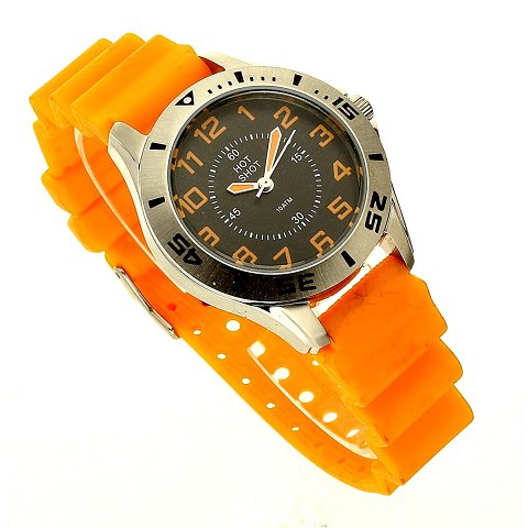 Sporty HotShot unisex ur. Urkasse af rustfrit stål. Urskive sort med arabertal og central sekundviser. Uret er vandtæt. Urrem af gummi. Ø: ca. 33 mm.