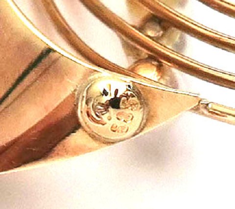 Broche af 14 kt guld, 40 x 40 mm., samlet vægt ca. 7,5 gr.