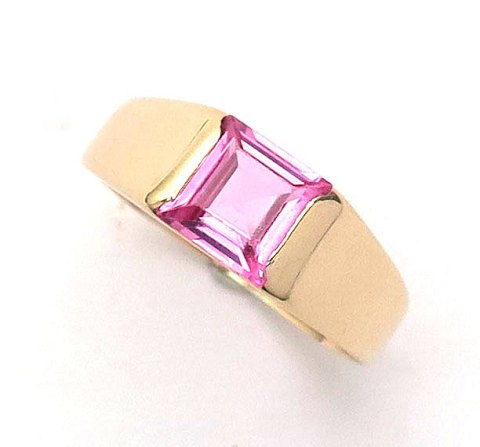 Ring af 14 kt. guld med square cut, pink ametyst 6 x 6 mm. Ring tr. 52, samlet vægt ca. 2,5 gr.