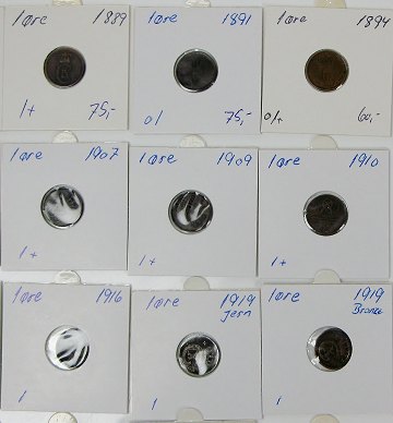 Samling 1 ører, bestående af: 1874,-75,-87,-89,-91,-94,-99, 1902,-04,-07,-09,-10,-12,-13,-15,-16,-19(både jern og bronze),-20,-21,-22,-23,-26,-27,-28,-29,-30,-32,-33,-34,-35,-36,-37,-38,-39,-40,-41,-42,-43,-44,-45,-46,-47,-48,-49,-50.