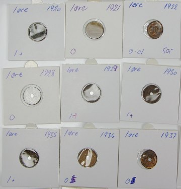 Samling 1 ører, bestående af: 1874,-75,-87,-89,-91,-94,-99, 1902,-04,-07,-09,-10,-12,-13,-15,-16,-19(både jern og bronze),-20,-21,-22,-23,-26,-27,-28,-29,-30,-32,-33,-34,-35,-36,-37,-38,-39,-40,-41,-42,-43,-44,-45,-46,-47,-48,-49,-50.
