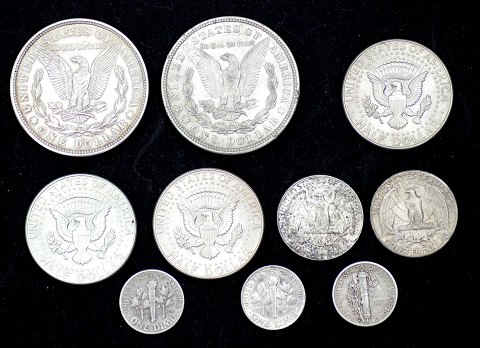 USA, Dime ~ One Dollar 1921 - 1967 sølv (10)