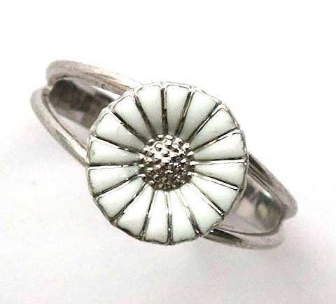 Georg Jensen *Margueritte* ring af sterling sølv, front med emaillebelagt blomst, diameter 11 mm., Ring Str. 55