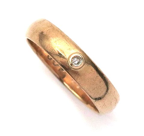 Ring af 8 kt. guld, prydet med diamant på 0,005 ct. Ring Str. 53½, samlet vægt ca. 3,5 gr.