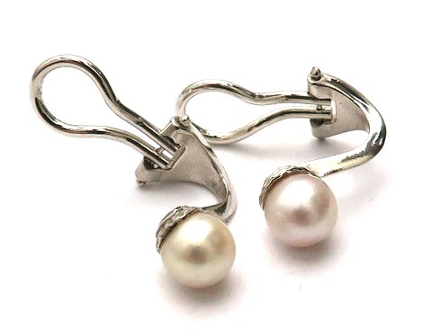 Par øreclips af sterling sølv med 6½ mm. kulturperle