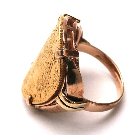 Ring af 18 kt. guld, Prydet med gulddukat *Franc. I. af Østrig 1915*