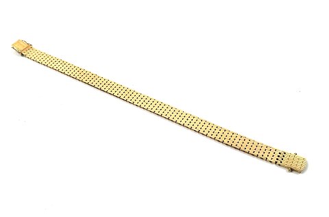 Murstensarmlænke af 14 kt. guld med sikkerhedslukke ligeledes i murstensmønster. L. 18,5 cm., vægt ca. 23 gr.