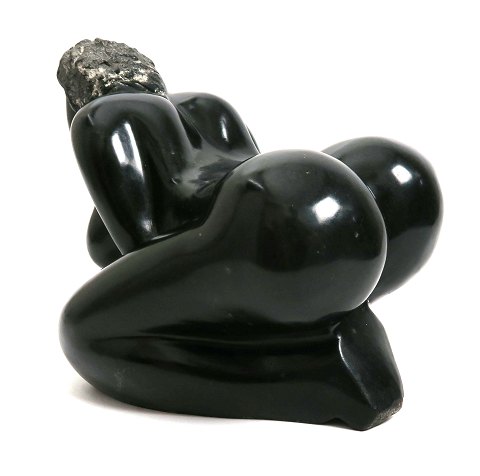 Atwell Chipiri (Zimbabwe): Yppig badepige, skåret af serpentinsten fra Zimbabwe. L. L. 32 cm., H. 24 cm.