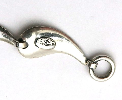 Armlænke af sterling sølv med bladformede led og bidsellås, L. 20 cm. cm.