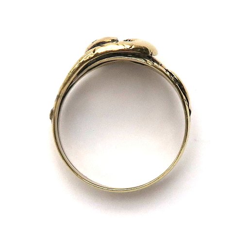 Ring af 14 kt. guld med gennembrudt, forhøjet front. Ring str. 54, vægt ca. 4 gr.