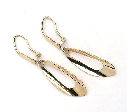 Par ørelokker af 14 kt. guld med bladførmet vedhæng. L. 41 mm., samlet vægt ca. 2,5 gr.