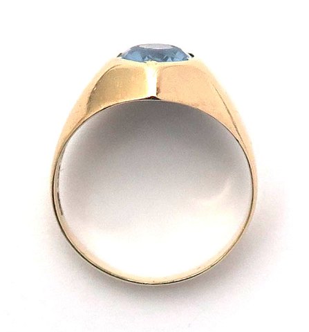 Ring af 14 kt. guld, prydet med blå sten, Str. 55, samlet vægt ca. 3,5 gr.