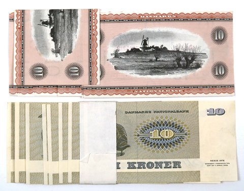 10x 10 kr. 1967 *Portræt og Landskab* serie K8 og 10x 10 kr. 1972, *Dyreserien* serie A1.