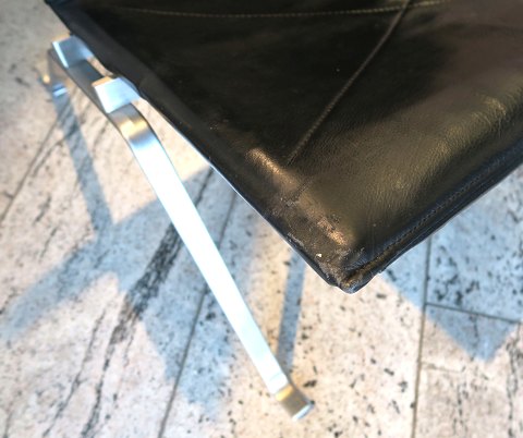 Poul Kjærholm PK-22 hvilestol med stel af matbørstet stål, sæde og ryg af sort læde. Ryg H. 71 cm., udført hos Fritz Hansen.