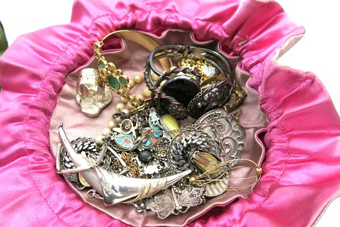 Stort lot diverse bijouteri inklusive få enkelte halskæder af gulddoublé.