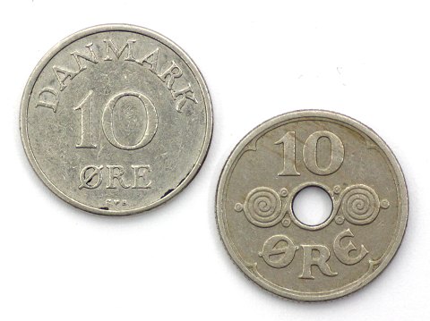 10 øre 1959 er det sjældneste årstal for typen, 10 øre 1933er et bedre årstal for typen.