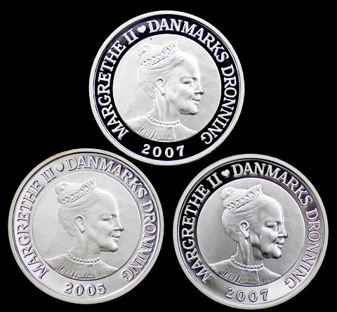 Lot bestående af H.C. Andersen 10 kr. finsølv 2005 *Nattergalen* og *Den Grimme Ælling* samt 100 kr. finsølv *Int. polarår 2009*.