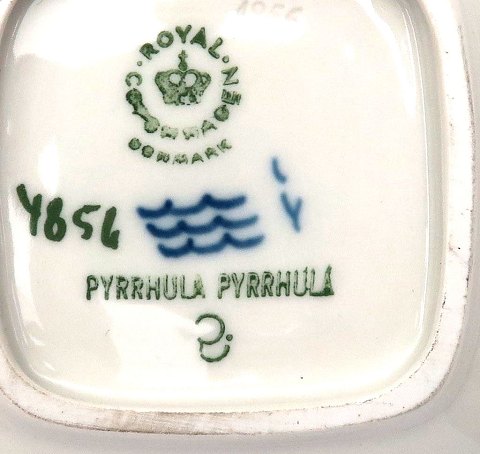 Royal Copenhagen, dyb underglasur skål med motiv i form af en Dompap på en gæslingegren. 10 x 10 cm., 1. sortering.