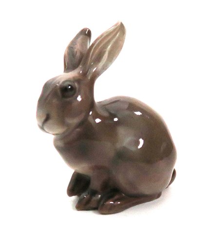 Sjælden DJ underglasur figur i form af siddende hare, 1. sortering H. 7 cm. Design Jens Peter Dahl Jensen.