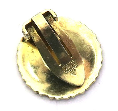 A. Michelsen, par Marguerit øreclips af forgyldt sterling sølv med emaljebelagte kronblade. Diameter 18 mm.