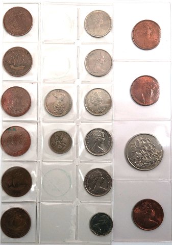 Album ideholdende blandt andet Georg VI, Half Crown 1937 og 1947 sølv, Georg V, florin 1923 sølv samt Three Pence 1910 og 1917 sølv, lidt New Zealnd og Australien.