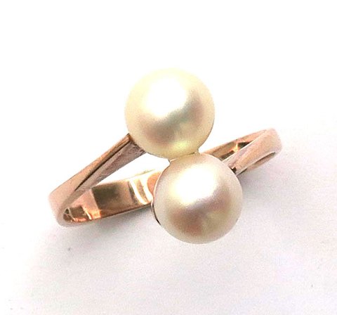 Ring af 8 kt. guld, prydet med to 6½ mm. kulturperler.