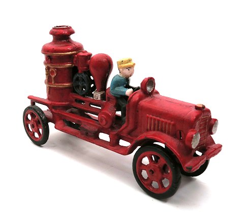 Old Timer dekorationsbrandbil af håndbemalet støbejern - kopi af en amerikansk legetøjs brandbil (Fire Pumper) fra 1915. L. 20 cm.