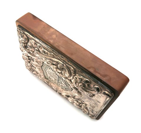 Plaquette af sølv, monteret på plade af bakelit, 10 x 14 cm. *Aarhus Haandværker Forening - stiftet 1848*