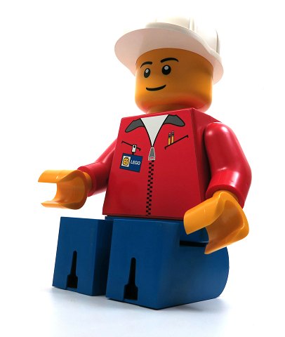 LEGO udstillingsfigur af plast i form af leddelt byggearbejder, H. 49 cm.