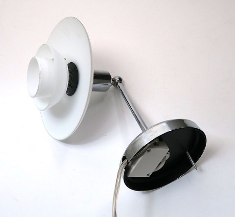 Poul Henningsen, PH 2/1 væglampe med stel og bund af forkromet metal. 2/1 tre skærme af opaline glas. Topskærm diameter 20 cm., H. 165, D. 29,6 cm.