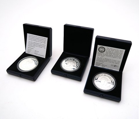 Lot bestående af H.C. Andersen 10 kr. finsølv 2005 *Den Grimme Ælling* samt 2x 100 kr. finsølv *Int. polarår 2007 isbjørn*. Hver medalje vejer 31,1 gram. Alle i originale æsker og to med certifikater.