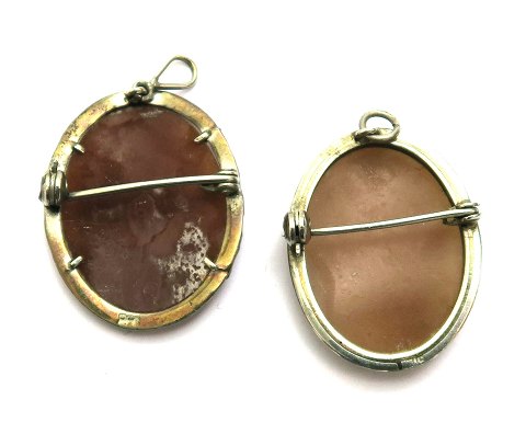 To antikke camé brocher/vedhæng i ramme af sølv (2)