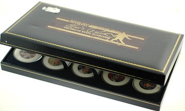 Møntsæt, præget hos The Morgan Mint, i brillant ucirkuleret kvalitet, prydet m. en speciel indfarvet overflade, der gengiver forskellige perioder i Elvis´ karriere.