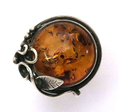 Ring af sterling sølv, prydet med varmebehandlet rav