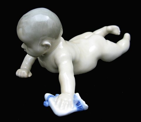 Royal Copenhagen figur #1739 i form af kravlende baby med sok. 15 cm., 1. sortering. Design: Ada Bonfils.