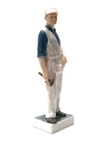Royal Copenhagen figur #4535 i form af tømrer med kløfthammer og sømbælte. H. 23 cm., 1. sortering. Design J.M.Nissen.