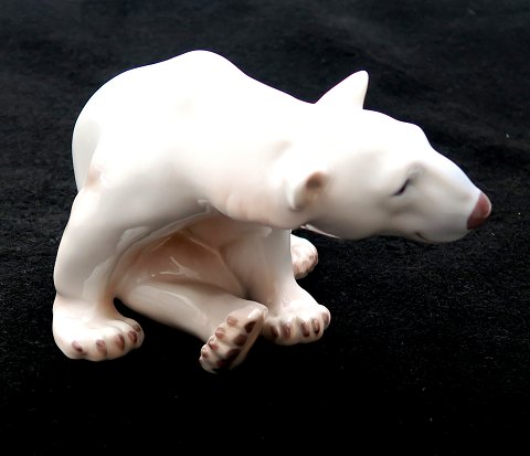 Bing & Grøndahl figur #1629 i form af isbjørn af Jens Peter Dahl Jensen. L. 19 cm., 2. sortering.