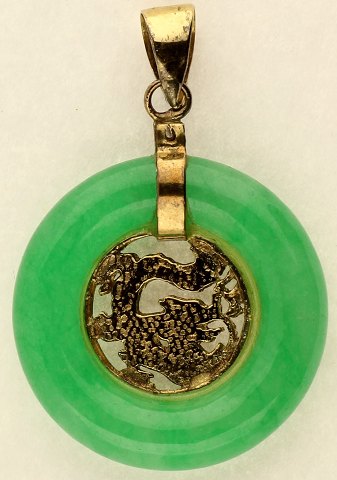 Prydet med ring af jade med kinesisk slange i midten. Ø 18 mm.