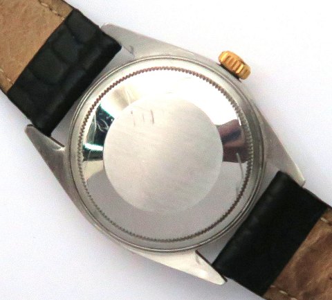 Rolex Oyster Perpetual Datejust herrearmbåndsur fra 1965, ref. nr. 1601, i urkasse af stål og urkrans af guld. Sort skive bag plexiglas med stregindikation, central sekundviser og datovisning i #3 position. Automatisk urværk caliber 157. Urkasse diameter 36 mm. Croco læderrem med Rolex metalspænde.