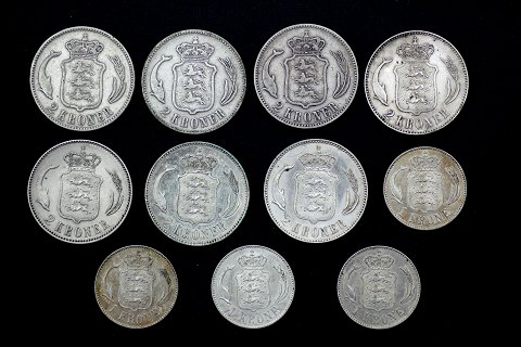 Christian IX / Christian X, 1 og 2 kr. sølv 1875 ~ 1916 (11)