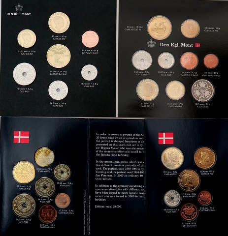 Møntsæt fra Den Kgl. Mønt indeholder det pågældende års mønter, præget i særlig høj kvalitet.
