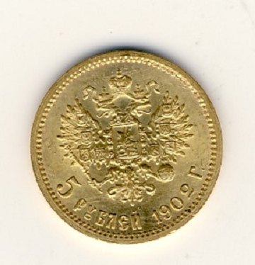 Rusland, 5 rubler 1902 GULD Y 62, vægt 4,30 G. finhed .900