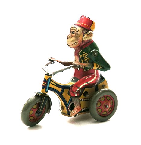 Arnold, mekanisk legetøjsabe på trehulet cykel. D.R.G.M 1930