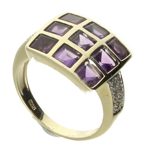 Ring af guld 14 kt. prydet med ametyster og brillanter