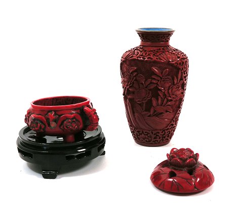 Kinesisk laqeur røgelseskar og vase (2)