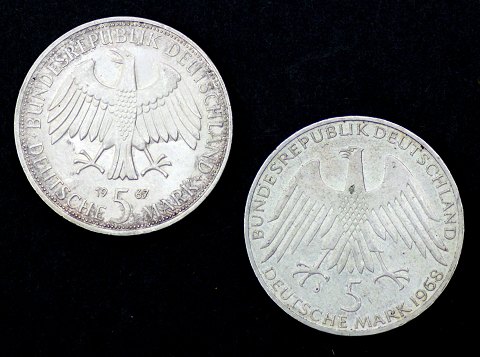 Tyskland, 5 Mark 1967 og 1968 sølv (2)