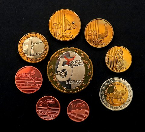 Sæt indeholdende 1, -2, -5, -10, 20 og 50 Ceros ms og cn samt 1, 2, - og 5 euro, delvist forsølvet. Opbevaringsæske med certifikat medfølger. Limiteret 0760/5000.
