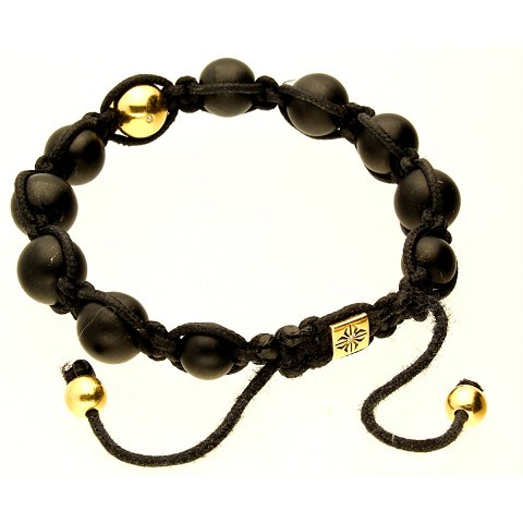 Shamballa unisex armbånd med 10 mm kugle af 18 kt. guld og diamant. De øvrige 10 kugler er matterede onyx.