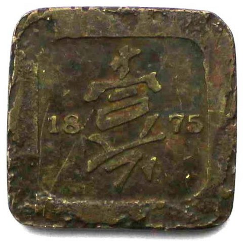 Token, 10 Cents 1875 - plantagepenge, Begerpang Estate, 24 x 24 mm.